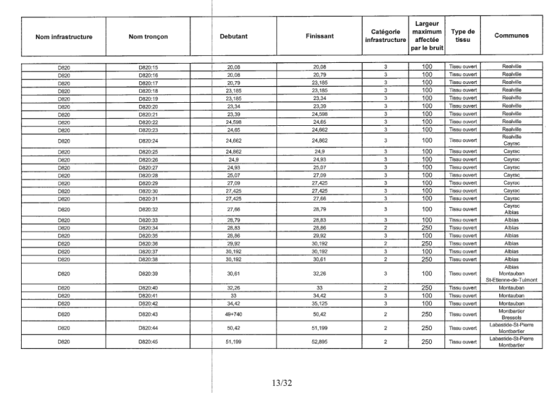 Visiblement, le découpage des tronçons de la RD820 dans Albias et leur caractérisation suivant catégories 2 et 3, et donc distance d'influence du bruit routier à 250 m ou 100m suivant la catégorie, n'est pas très explicite avec la réalité du tissu urbain et celà mériterait des explications plus détaillées.